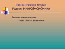 Экономическая теория Раздел МИКРОЭКОНОМИКА Введение в микроэкономику Теория