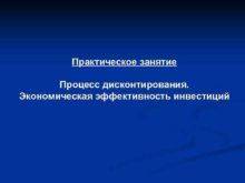 Практическое занятие Процесс дисконтирования Экономическая эффективность инвестиций