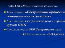 БОУ ОО Медицинский колледж Сестринский процесс п геморрагических