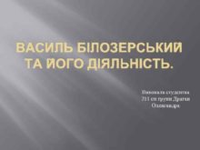 ВАСИЛЬ БІЛОЗЕРСЬКИЙ ТА ЙОГО ДІЯЛЬНІСТЬ Виконала студентка 211