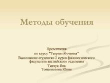 Методы обучения Презентация по курсу Теория обучения Выполнили