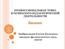 ПРОФЕССИОНАЛЬНАЯ ЭТИКА В ПСИХОЛОГО-ПЕДАГОГИЧЕСКОЙ ДЕЯТЕЛЬНОСТИ Введение Хайбрахманов Рустем