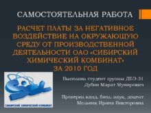 САМОСТОЯТЕЛЬНАЯ РАБОТА РАСЧЕТ ПЛАТЫ ЗА НЕГАТИВНОЕ ВОЗДЕЙСТВИЕ НА