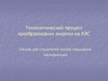 Технологический процесс преобразования энергии на АЭС Лекция для