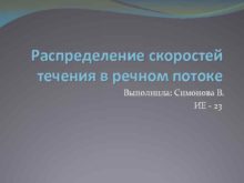 Распределение скоростей течения в речном потоке Выполнила Симонова