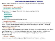 Классификация компьютерных вирусов Вирусы можно разделить на классы