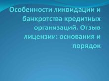 Особенности ликвидации и банкротства кредитных организаций Отзыв лицензии