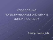 Управление логистическими рисками в цепях поставок Лектор Костин