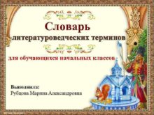 Словарь литературоведческих терминов для обучающихся начальных классов Выполнила