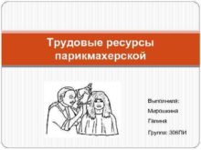Трудовые ресурсы парикмахерской Выполнила Мирошкина Галина Группа 306