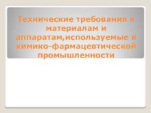 Технические требования к материалам и аппаратам используемые в