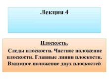 Лекция 4 Плоскость Следы плоскости Частное положение плоскости