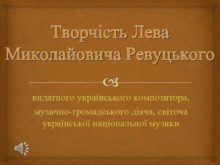 Творчість Лева Миколайовича Ревуцького видатного українського композитора музично-громадського