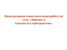 Внеаудиторная самостоятельная работа по теме Прямые и плоскости
