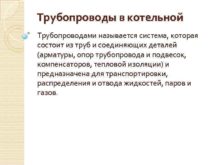 Трубопроводы в котельной Трубопроводами называется система которая состоит