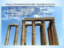 Лекция 2 Возникновение философии Философия Античности 1 Социокультурные