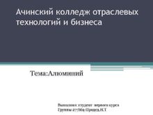 Ачинский колледж отраслевых технологий и бизнеса Тема Алюминий