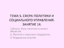 ТЕМА 5 СФЕРА ПОЛИТИКИ И СОЦИАЛЬНОГО УПРАВЛЕНИЯ ЗАНЯТИЕ