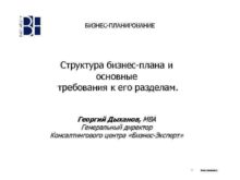 БИЗНЕС-ПЛАНИРОВАНИЕ Структура бизнес-плана и основные требования к его