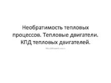 Необратимость тепловых процессов Тепловые двигатели КПД тепловых двигателей
