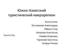 Южно-Азиатский туристический макрорегион Группа 111 р Выполнили Богомазова