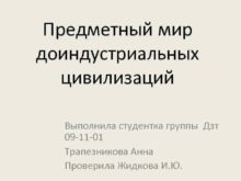 Предметный мир доиндустриальных цивилизаций Выполнила студентка группы Дзт