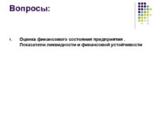 Вопросы 1 Оценка финансового состояния предприятия Показатели ликвидности