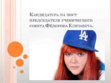 КАНДИДАТУРА НА ПОСТ ПРЕДСЕДАТЕЛЯ УЧЕНИЧЕСКОГО СОВЕТА ФЁДОРОВА ЕЛИЗАВЕТА