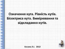 Означення кута Рівність кутів Бісектриса кута Вимірювання та