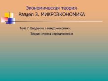 Экономическая теория Раздел 3 МИКРОЭКОНОМИКА Тема 7 Введение