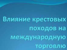 Влияние крестовых походов на международную торговлю Крестовые