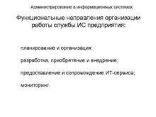 Администрирование в информационных системах Функциональные направления организации работы