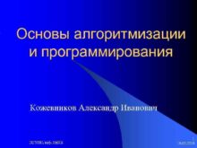 Основы алгоритмизации и программирования Кожевников Александр Иванович ПГУПС