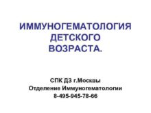ИММУНОГЕМАТОЛОГИЯ ДЕТСКОГО ВОЗРАСТА СПК ДЗ г Москвы Отделение