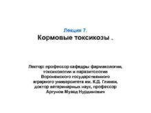 Лекция 7 Кормовые токсикозы Лектор профессор кафедры фармакологии
