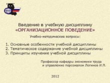 Введение в учебную дисциплину ОРГАНИЗАЦИОННОЕ ПОВЕДЕНИЕ Учебно-методические вопросы
