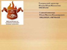 Генеральный директор Юдина Юлия Витальевна 89033036368 Главный инженер