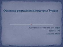 Основные рекреационные ресурсы Турции Выполнила Студентка 1 го