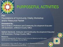 PURPOSEFUL ACTIVITIES For Foundations of Community Vitality Workshop