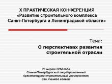 X ПРАКТИЧЕСКАЯ КОНФЕРЕНЦИЯ Развитие строительного комплекса Санкт-Петербурга и