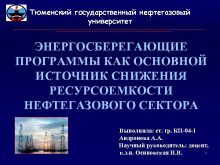 Тюменский государственный нефтегазовый университет ЭНЕРГОСБЕРЕГАЮЩИЕ ПРОГРАММЫ КАК ОСНОВНОЙ