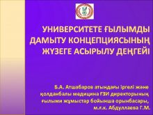 УНИВЕРСИТЕТЕ ҒЫЛЫМДЫ ДАМЫТУ КОНЦЕПЦИЯСЫНЫҢ ЖҮЗЕГЕ АСЫРЫЛУ ДЕҢГЕЙІ Б