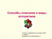Способы описания и виды алгоритмов Учитель информатики гимназии