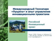Международный Технопарк Пущино и опыт управления инновационными проектами