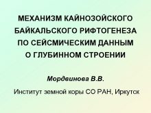 МЕХАНИЗМ КАЙНОЗОЙСКОГО БАЙКАЛЬСКОГО РИФТОГЕНЕЗА ПО СЕЙСМИЧЕСКИМ ДАННЫМ О
