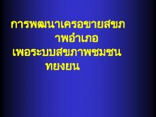 การพฒนาเครอขายสขภ าพอำเภอ เพอระบบสขภาพชมชน ทยงยน ระบบสขภาพชมชน Community Health