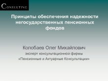Принципы обеспечения надежности негосударственных пенсионных фондов Колобаев Олег