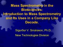 Mass Spectrometry in the Biosciences Introduction to Mass