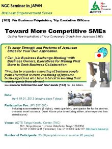 NGC Seminar in JAPAN Business Empowerment Series 102