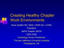 Creating Healthy Chapter Work Environments Rose Shaffer RN